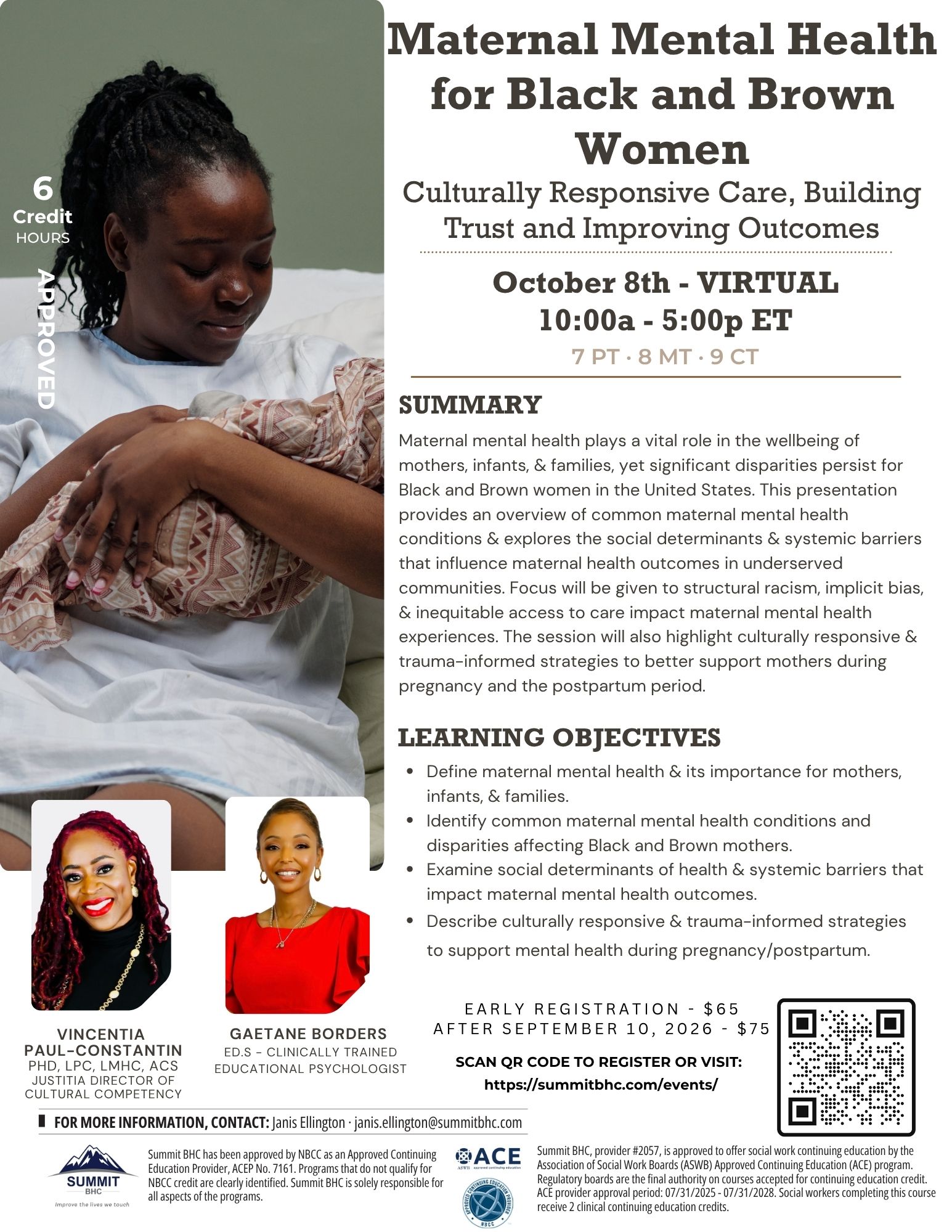 Summit BHC has been approved by NBCC as an Approved Continuing Education Provider, ACEP No. 7161. Programs that do not qualify for NBCC credit are clearly identified. Summit BHC is solely responsible for all aspects of the programs.